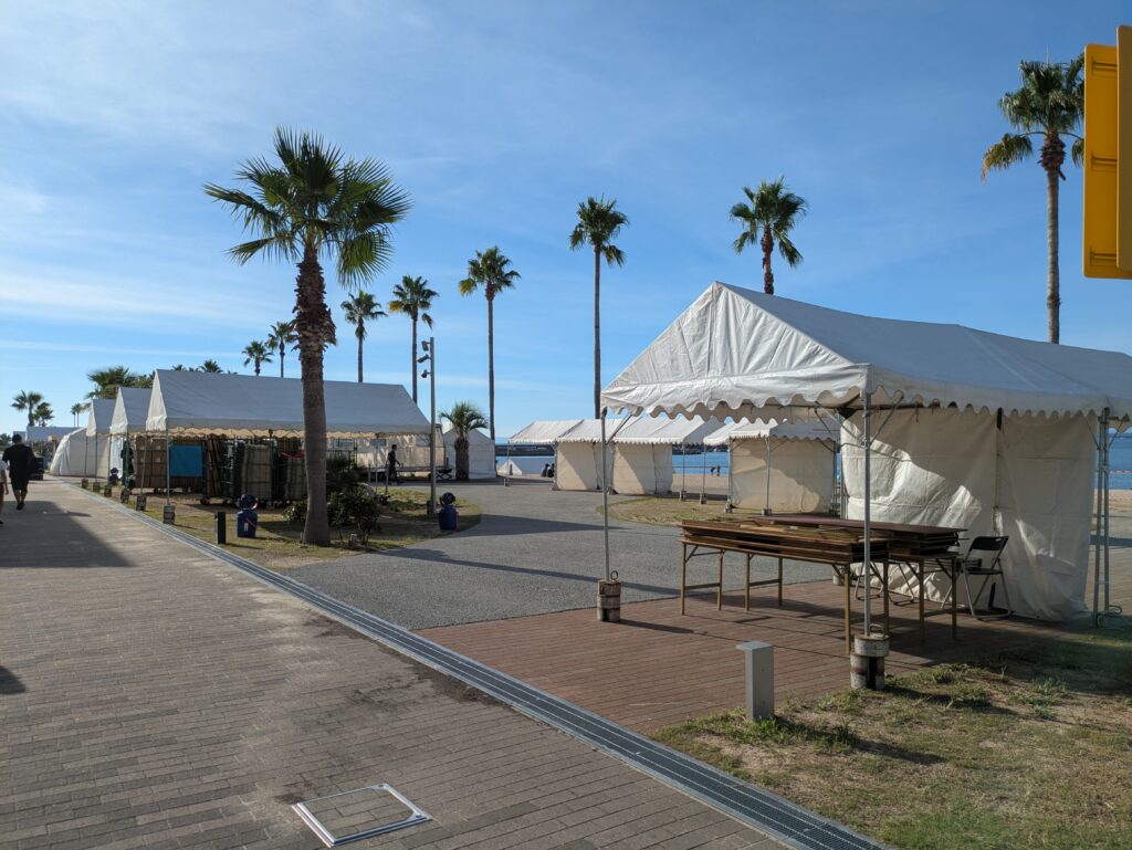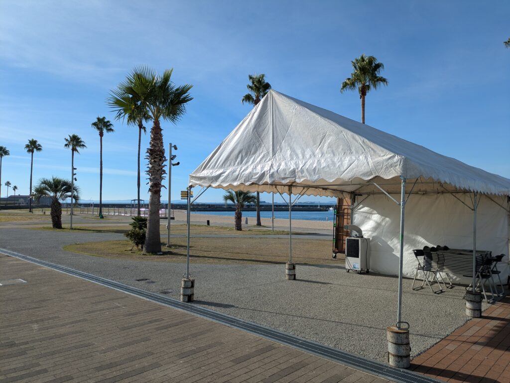- ・道路上にもテントを立てるため、当日一発勝負での設営を実施