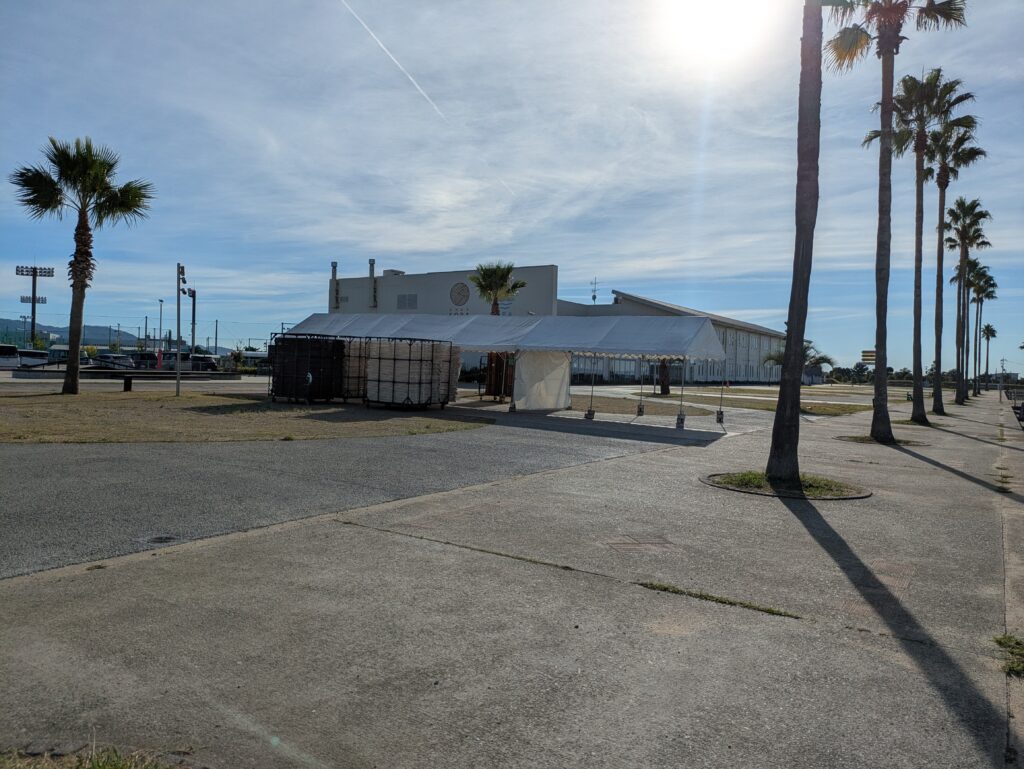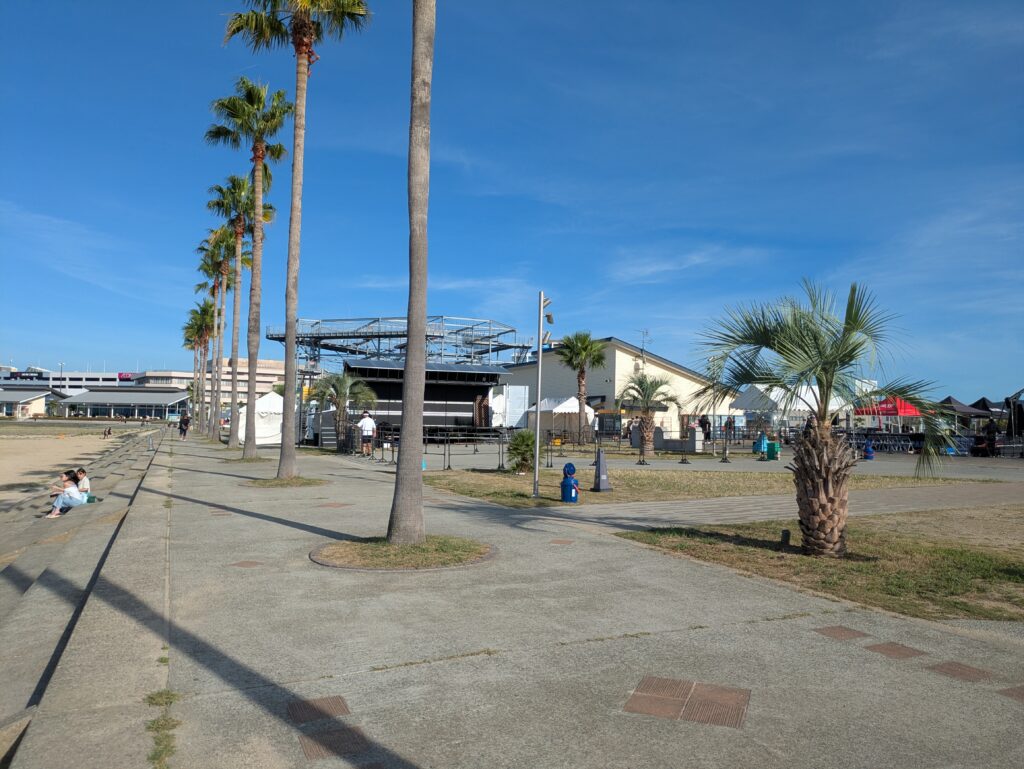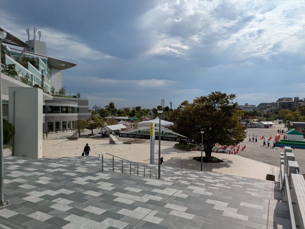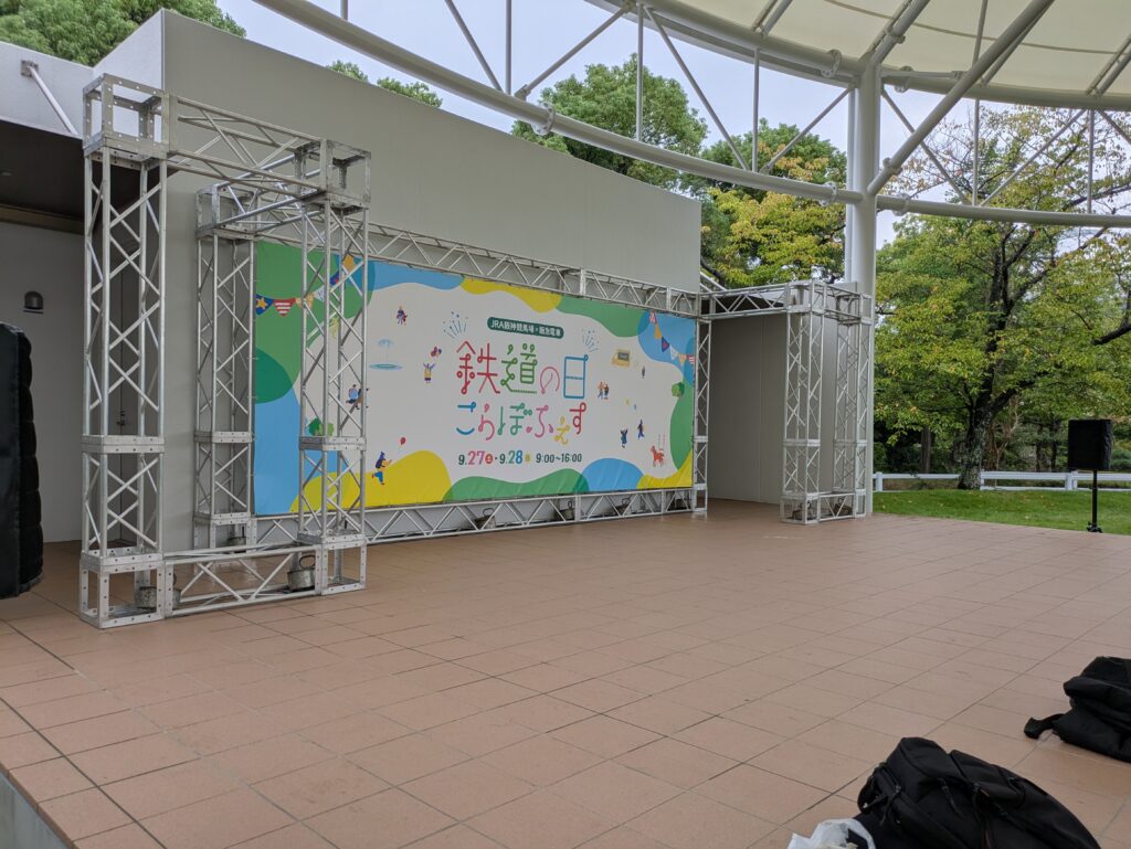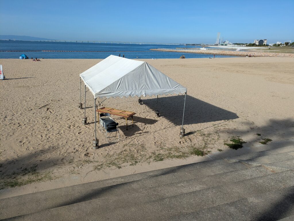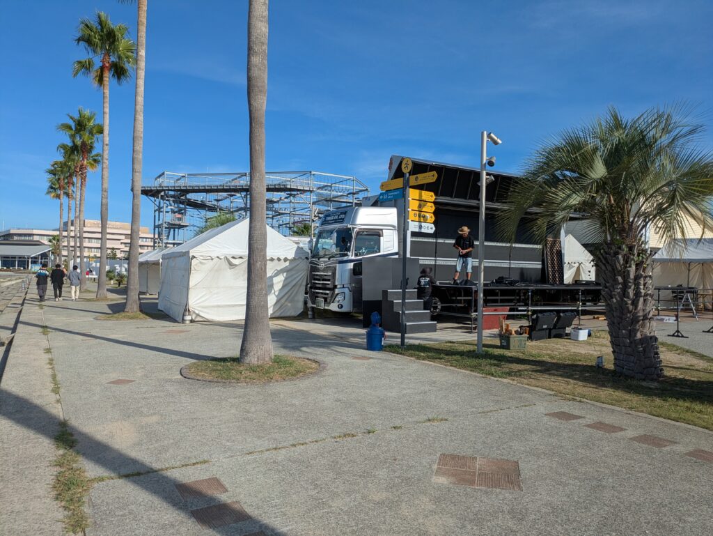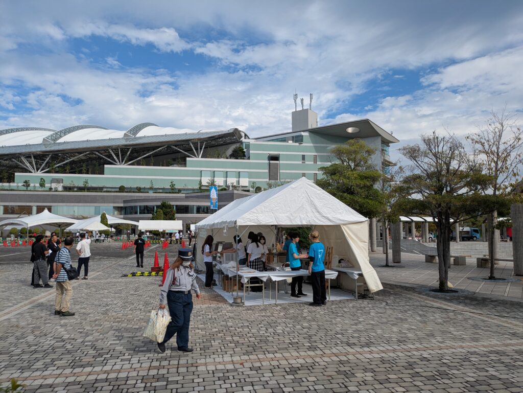 大阪市西成区で開催された「西成区民まつり」。会場は西成区役所や西成区民センターを含む中心街一体を使った大規模なお祭りで、道路にもテントを立てるため、設営は当日一発勝負となりました。